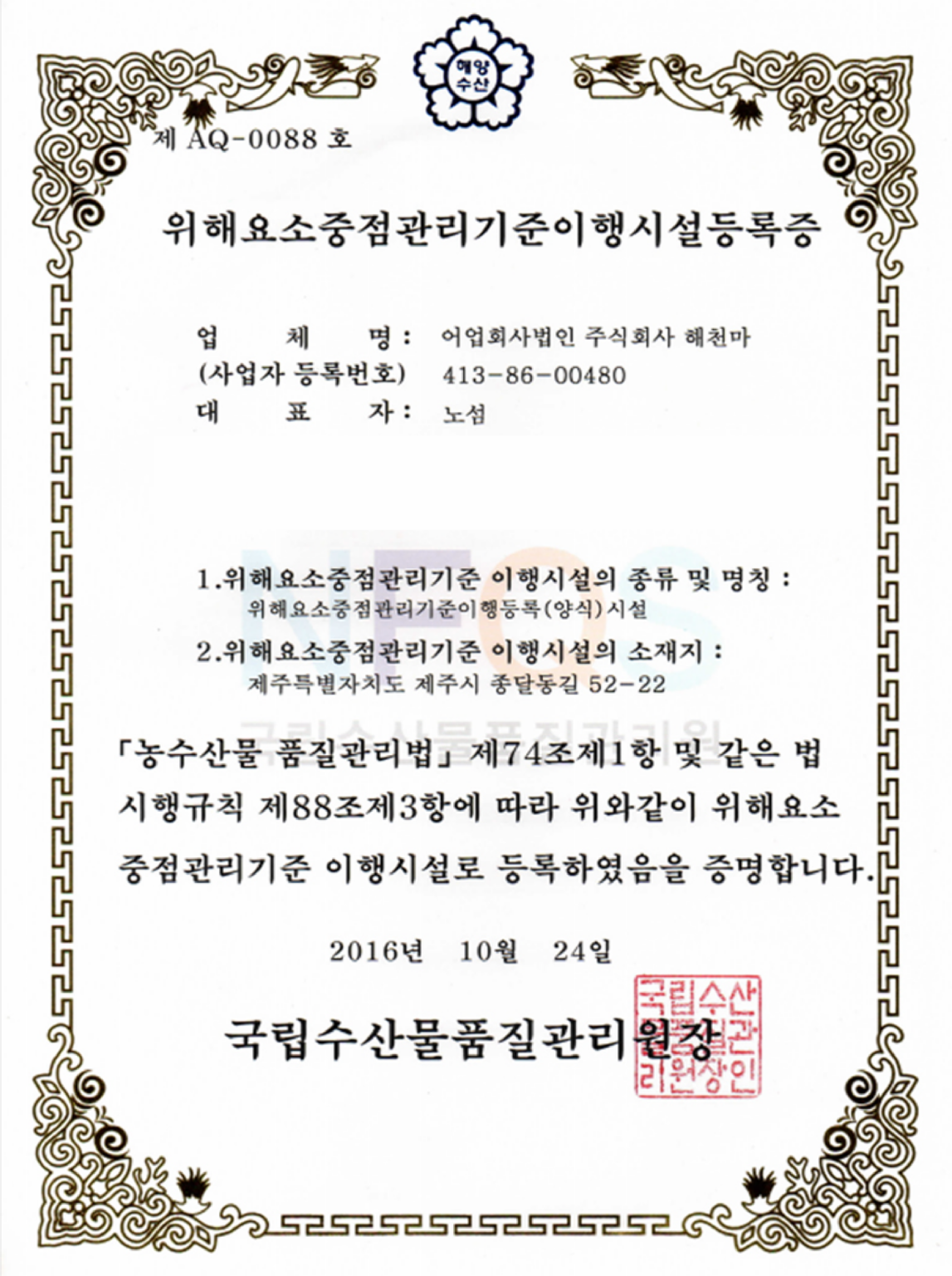 Founded in 2005 as a Korean marine aquarium fish center, HAECHUNMA is the first and only fishery corporation in Korea which owns seahorse farming techniques. They have produced 10 species of clownfish and 7 species of seahorses and have been supplying them to local and overseas markets as the only marine aquarium fish production business in Korea.
